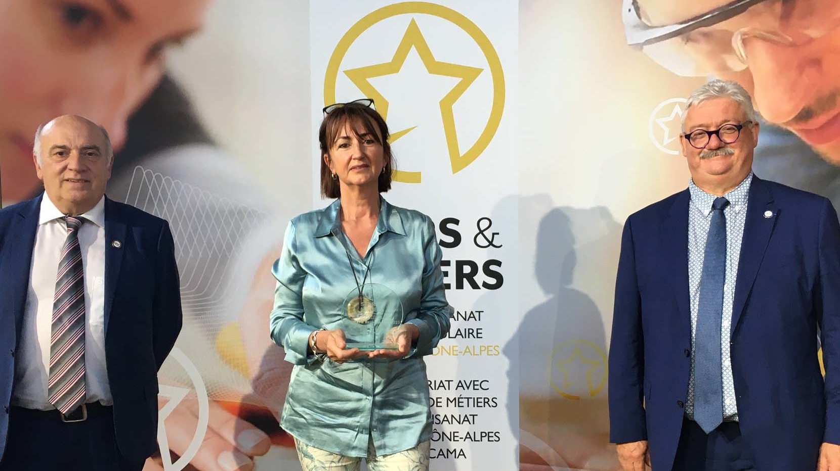 Remise du Grand Prix Responsable  : Alain MOSSIERE – Socama,  Martine Lenoir – Maison Lenoir,  Serge Vidal – CMA AURA