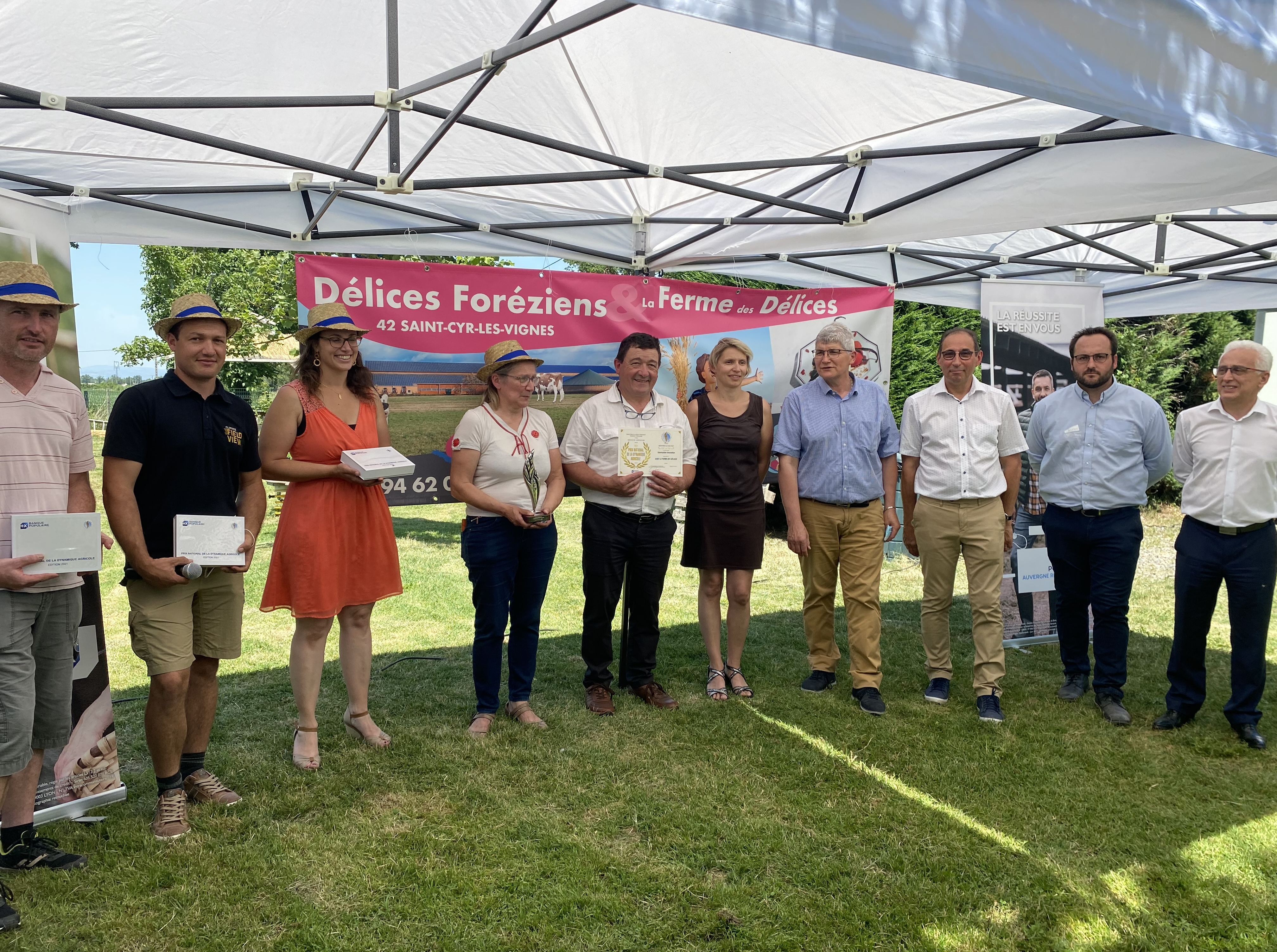 Le 16 juin 2021, remise du Prix National de la Dynamique Agricole aux exploitants du GAEC la FERME DES DELICES à Saint-Cyr-les-Vignes (42).