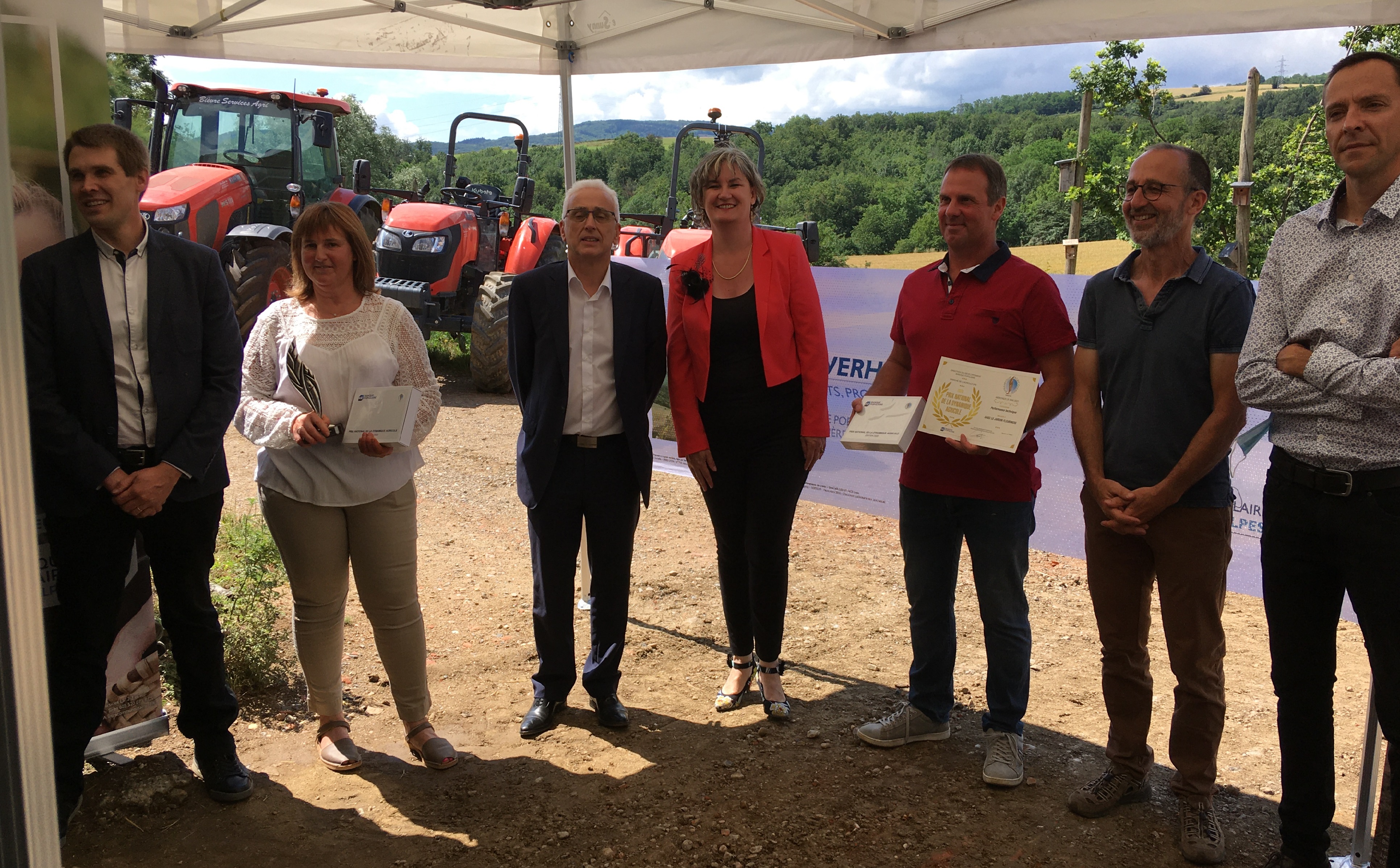 Le 23 juin 2021, remise du Prix National de la Dynamique Agricole aux exploitants du GAEC LE JARDIN FLEURINOIS à Fleurieux-sur-l'Arbresle.